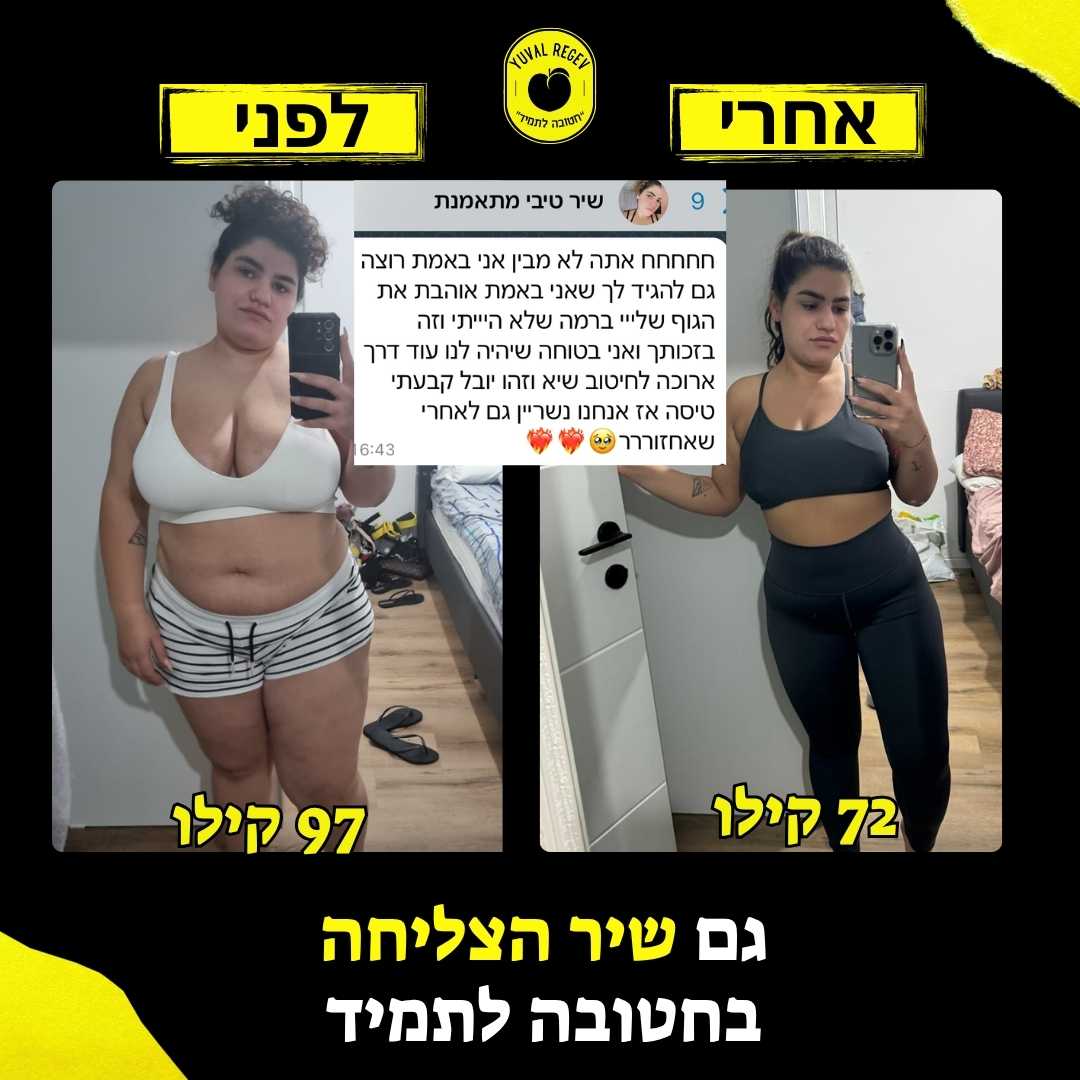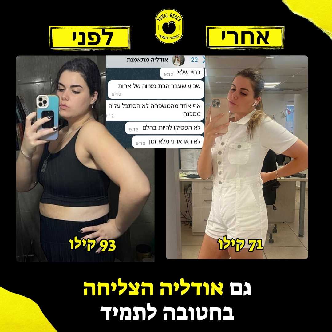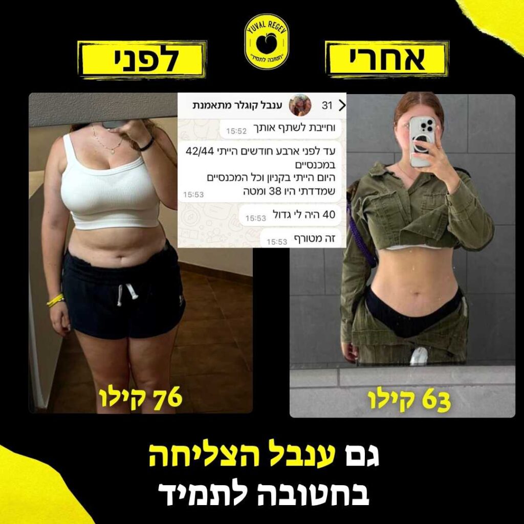 חלק גדול מהתוצאות שראית למעלה הן של חיילות, סדוטנטיות, אמהות, אחיות בית חולים ועוד המון בנות עם לוז עמוס, את מקבלת את הידע והנסיון של יובל שיודע להתאים בדיוק בשבילך איך לאכול ומה לעשות כדי שהמשקל שלך ירד למרות הלוז שלך
